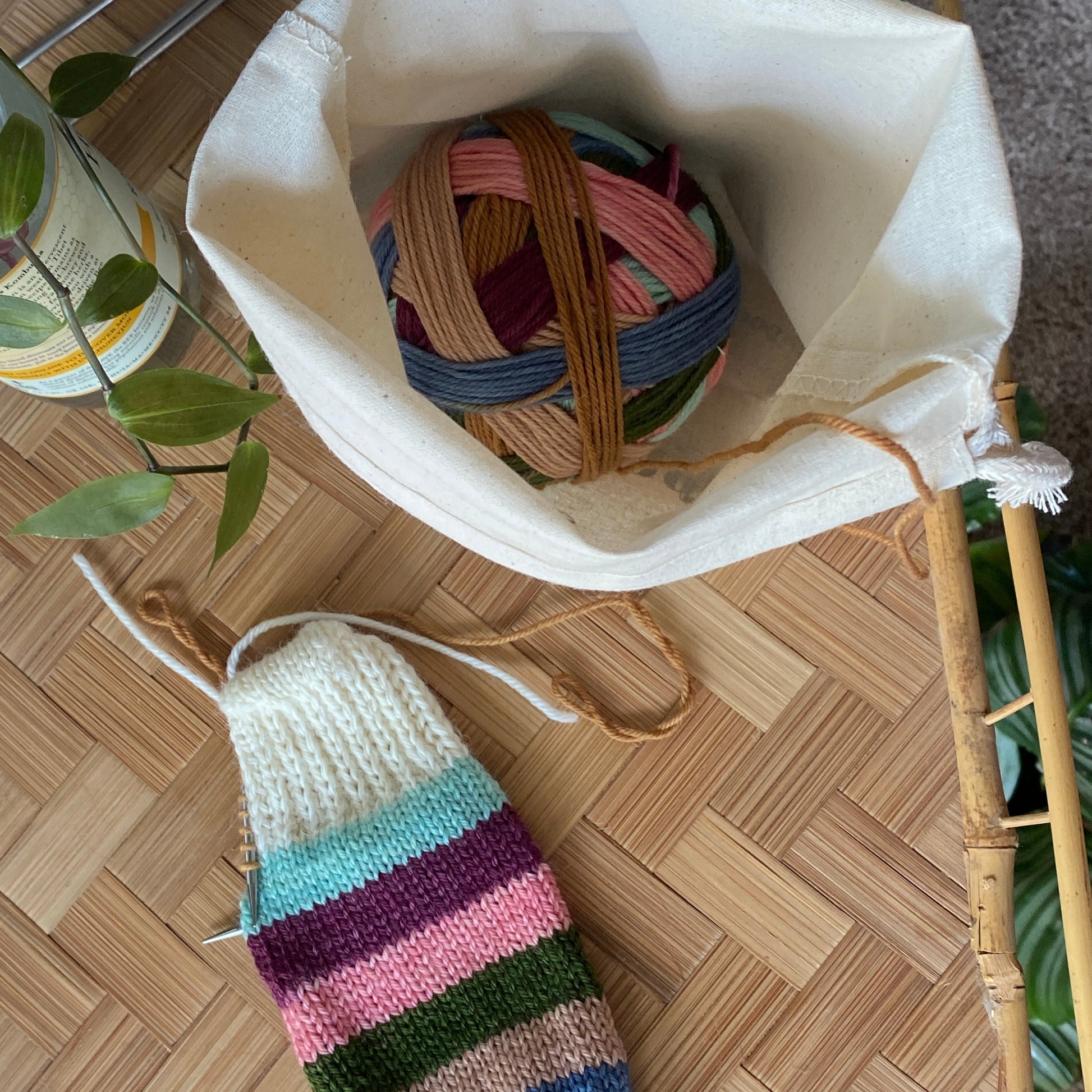 8"x10" Drawstring Bag: Perfect for those on-the-go smaller projects like socks, mittens and dishcloths
